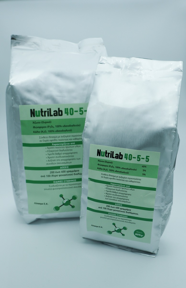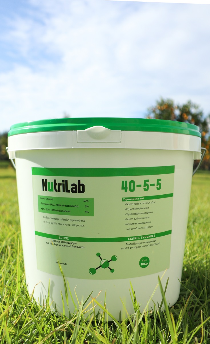 Άζωτο (Ουρικό) 40%, Φώσφορος (P2O5, 100% υδατοδιαλυτός) 5%, Κάλιο (K2O, 100% υδατοδιαλυτό) 5%, μαζί με ένα μείγμα ιχνοστοιχείων.